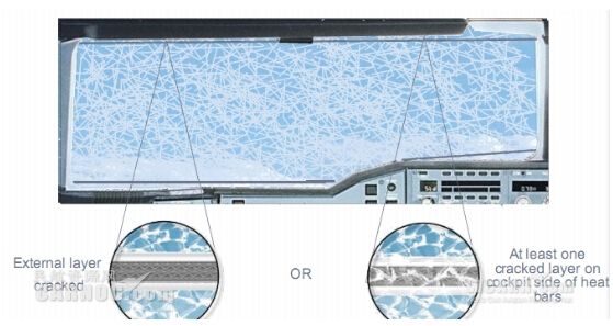 综上可见,除非结构层全部破裂(这种情况未找到先例),哪怕只有一层结构层完好对于安全没有直接的威胁,但是考虑到风挡的破损会间接影响到飞行员的视线,亦或是外层影响到风挡的加温,又不好判断航线上有无结冰区域等某些特殊的或者某些不确定的情况下,飞行员出于更为安全的考虑,返场或者备降也是可以接受的。