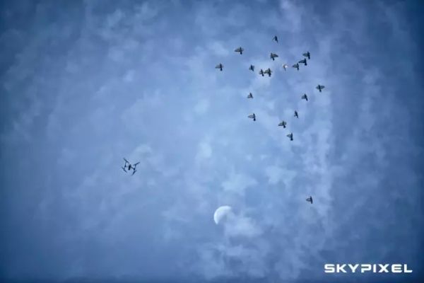 图:【专业组“飞行中的无人机”系列获奖作品】二等奖 无人机与群鸽/Yunqing Zhang