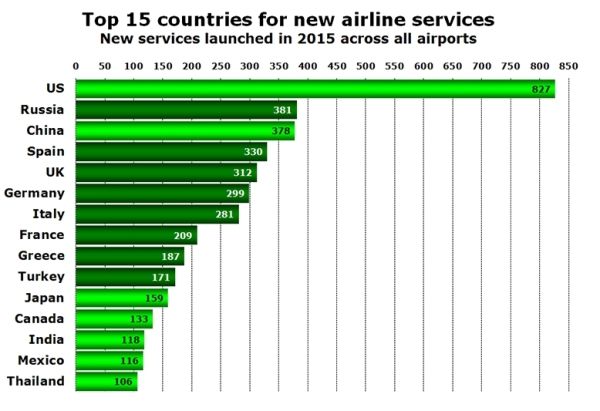 图:2015年新增航线最多的前15个国家