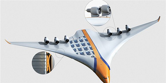团队设计出的这款低排放、大载客量飞机从空客、波音和美国航空航天局先前设计的未来概念机中汲取了灵感。