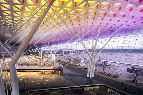图:乌鲁木齐国际机场北航站楼效果图。HKS, Inc.