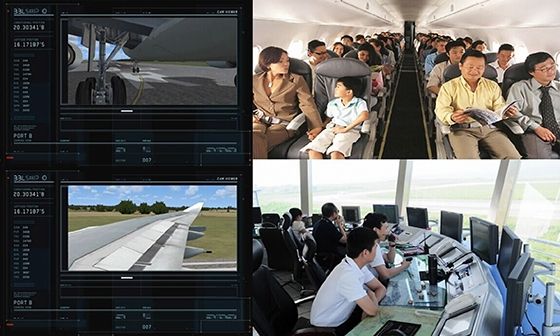 中国商飞北研中心航电技术研究部研发了以上系统的原理样机,其中SVS原理样机在传统的三维地形、机场、飞行数据的显示和地形、障碍物碰撞预警基础上、融入了可视飞行管道等功能,并提供了跑道边线和剩余长度的提示。同时,还实现了多波段和复杂气象环境下的红外呈现模拟仿真,完成了EFVS的原理样机研发,对以上两种系统的输出图像进行校正融合。通过在驾驶舱内的集成和实时飞行仿真验证,对上述系统提高飞行员态势感知的有效性进行了评估。未来,飞机除安装前置红外摄像机外,还可以安装多种特殊的摄像机为飞行员提供更广阔的视线范围。