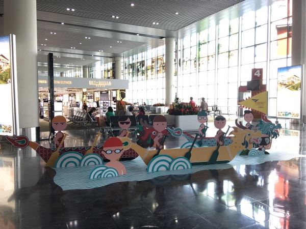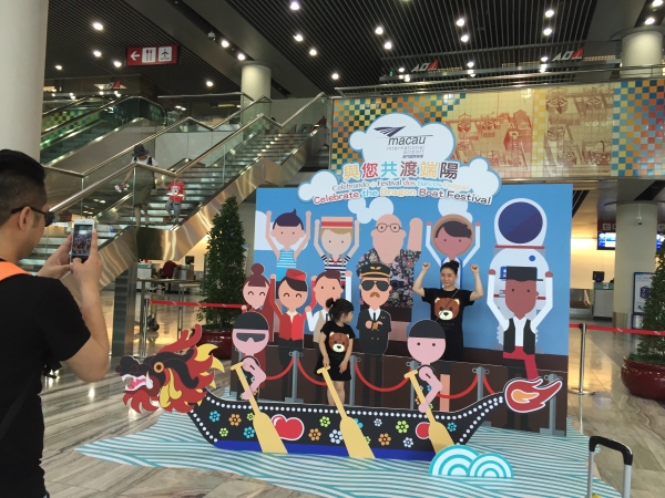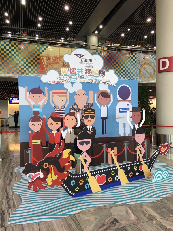 澳门国际机场为庆祝端午佳节,本月在机场客运大楼内设置了两座有趣的龙舟装饰,佳节装饰将澳门独有的中西文化交汇特色活现机场。