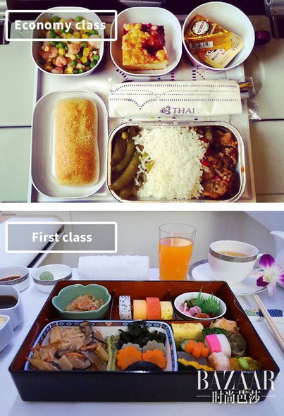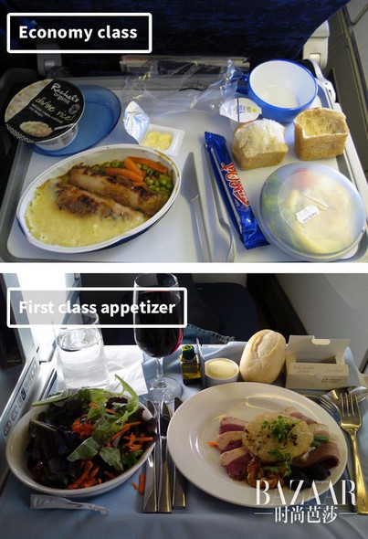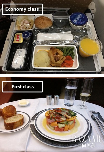 你知道头等舱和经济舱的食物究竟可以相差多少么?下面这九组图让你一眼明了。