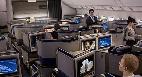 自从美国联合航空和大陆航空在2010年合并之后,便开始打造全球最大的航空公司,业务部门一直在努力创造一个时髦的新商务舱,并把它称之为“北极星”。它位于波音777s客机的前面,波音777s在每个座位都配置了16英寸的高清屏幕,菜单上还有龙虾,而且床上都配有萨克斯第五大道精品百货店的床单。