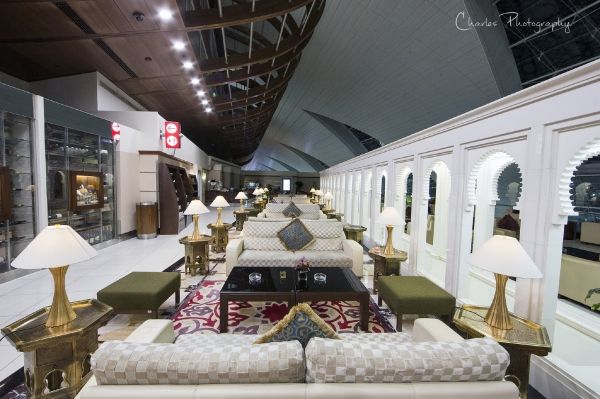 阿联酋航空在迪拜机场的Concourse A/B/C均设有休息室,其中以Concourse A的面积最大,休息室基本占据了整个候机大厅的二层,可直通大部分登机闸口。
