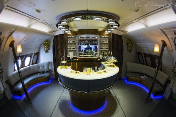 阿联酋航空在A380客舱上层后部设有空中酒吧,对所有头等舱及公务舱乘客开放,因此酒吧提供的酒水也是公务舱标准。