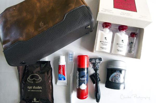 内容:牙具,剃须套装,止汗剂,眼罩,香水,须后润肤露,手霜,梳子