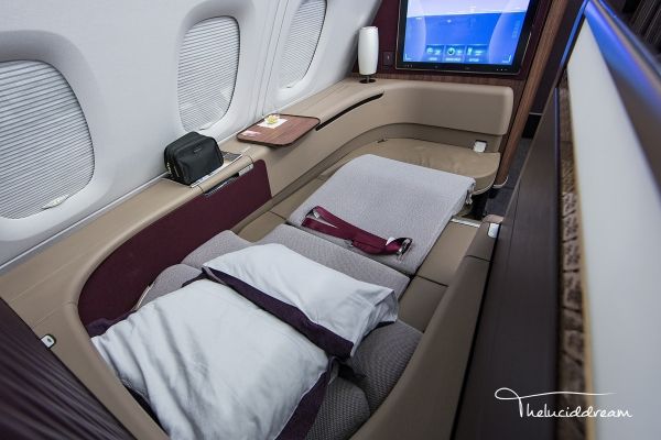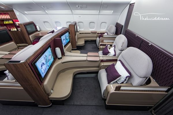 2014年卡塔尔航空接收了首架A380客机,同时也发布了新的头等舱产品,这也是卡航唯一一款真正意义上的头等舱,只用于A380客机。与阿联酋航空和阿提哈德航空的头等舱不同,卡航选择了开放式的包厢,虽然在私密性上不如封闭式包厢,但座位更宽敞,空气的流通性也更好。