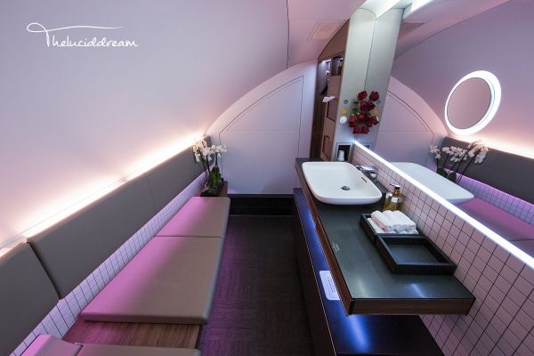 阿提哈德航空的头等舱设有两间浴室,其中一间位于空中官邸内,供空中官邸客人使用,另一间则供其他九个头等舱乘客使用,相比阿联酋航空的平均每七人一间,阿提哈德的淋浴会更紧张一些。