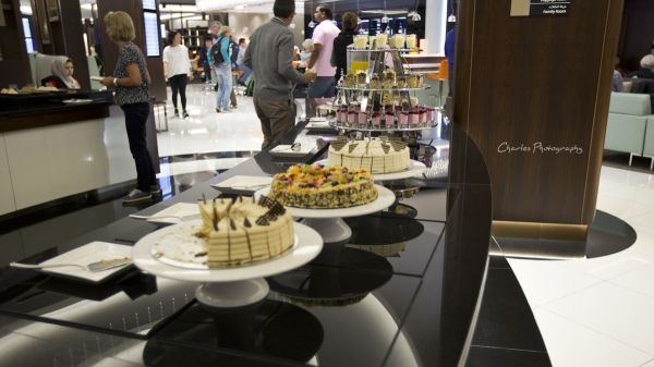 休息室内有多个餐厅,包括自助餐台或者A La Carte餐厅。