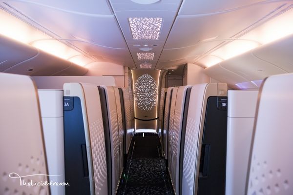 除了金碧辉煌的内饰,阿联酋航空还用LED灯点缀了天花板,乘客可以在夜晚的客舱里仰望星空。