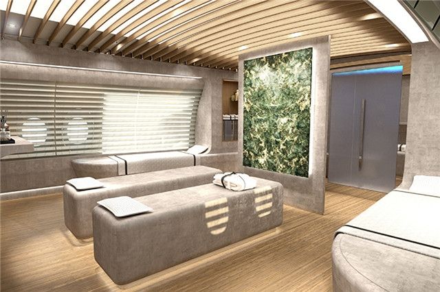 图:A350私人飞机自带SPA、按摩房以及瑜伽区域