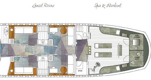 这架私人飞机的王冠明珠是一个配备了桑拿间、按摩躺椅、健身和瑜伽区以及蒸汽淋浴套间的“休闲保健区域”。