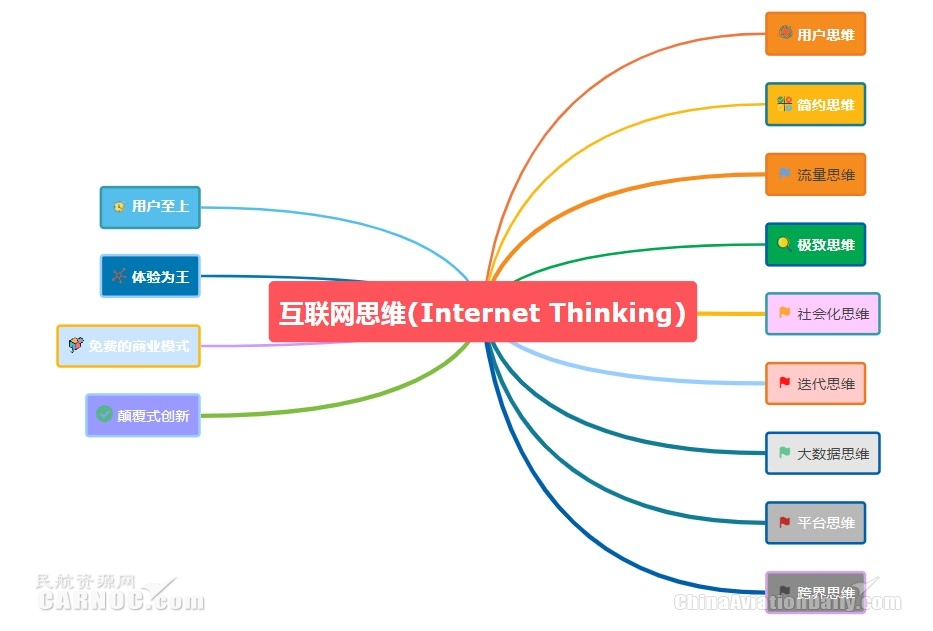 互联网技术正在改变人类的生产生活方式,一些以信息服务为主的行业,正受到互联网技术的冲击,在重新构建新的竞争形态。航空运输业因为提供的产品和服务对信息技术高度依赖,因此也面临着新的发展趋势和竞争形态。未来将没有“互联网企业”和“传统企业”的区别,所有的企业都是互联网企业,因此航空公司进行数字化转型,就必须建立起互联网思维习惯。互联网思维(Internet Thinking)是近年来新兴的一个概念,主要是指在(移动)互联网+丶大数据丶云计算等科技不断发展的背景下,对市场丶用户丶产品丶企业价值链乃至对整个商业生态进行重新审视的思考方式。