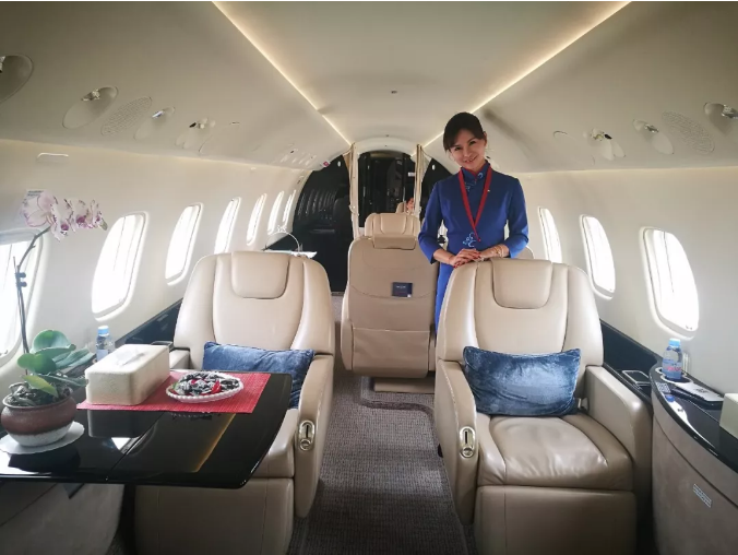 巴航工业莱格赛650公务机和东方公务航空空乘