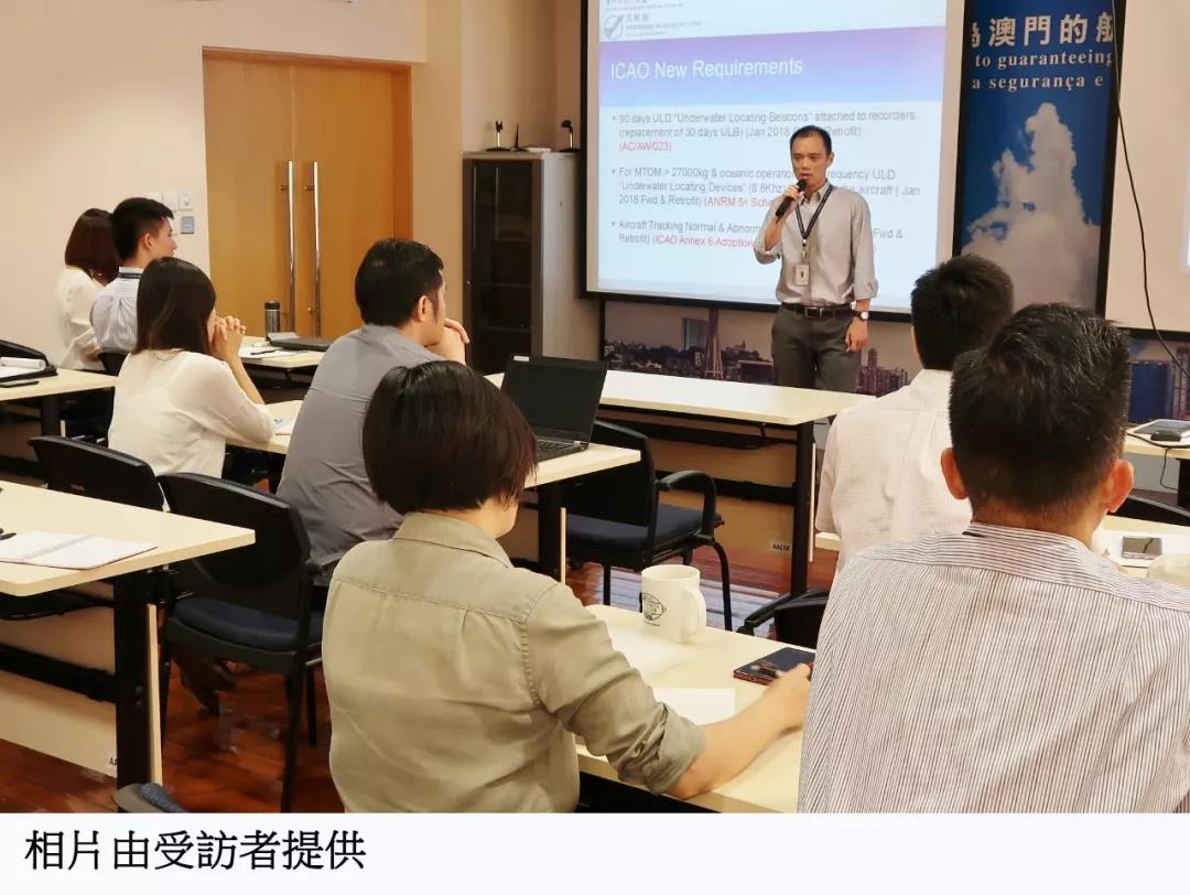 在澳门航空业已服务超过二十年的黎振荣,现时是国际商务航空(澳门)股份有限公司的质量控制总监,平日会透过进行内部审计和检查,确保同事所操作的标准营运程序,包括航空营运丶维修丶人员培训丶安全管理体系等环节的执行均符合澳门的航空法规和要求。黎振荣强调,所有工作的最终目标就是要达至航空安全。在分享现时的工作点滴时,黎振荣坦言在执行审计和检查工作时,与同事自然会出现不同的见解,所以强调理性的“讨论”很重要,只要大家在讨论时是以提升安全水平为目标,任何讨论都是一件好事。