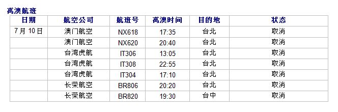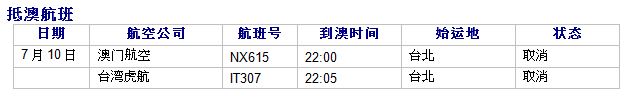 因受到台风“玛利亚”的影响, 澳门国际机场航班资料更新信息