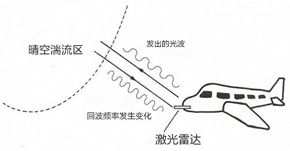 这个系统的工作原理是将激光从飞机前部投射到前方空中。然后,一个光学传感器会对这道激光进行追踪,当遇到大气中的微粒,激光就会被反射回来,而回波频率也会发生变化。软件会据此分析大气中不同距离下不同粒子的运动速度,如果这个速度对比存在明显的波动,就意味着前方有晴空湍流现象。