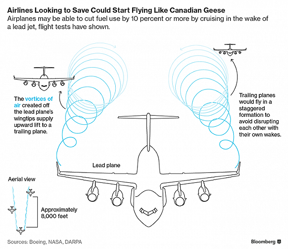 “如果你能够飞在正确的位置,这种方式真的会降低你的油耗。”波音负责产品研发的副总裁Mike Sinnett在接受彭博社的采访时表示。