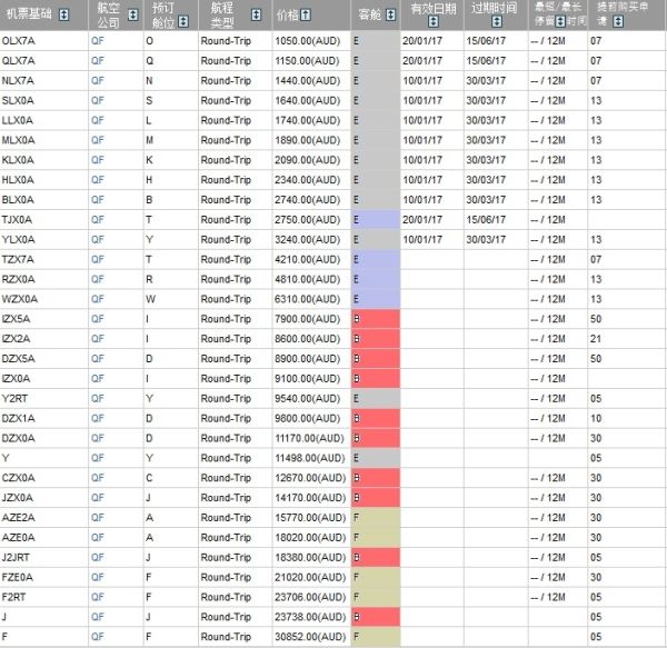 各个航空公司的代码系统不同,以现实中澳航的悉尼-洛杉矶空客A380航班为例,航班舱位代码的含义如下: