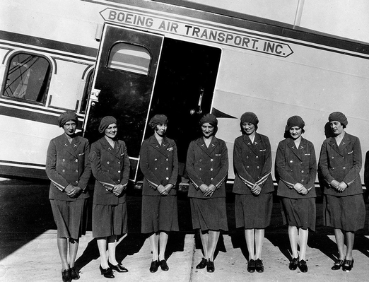 1930年,波音空运公司的空姐们,背景就是波音Model-80A。