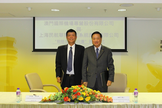 为进一步推动澳门民航业信息化的发展,2012 年6 月 26 日,澳门国际机场专营股份有限公司与上海民航华东凯亚系统集成有限公司(简称“凯亚”)签署了“战略合作意向书”。签署仪式在澳门国际机场专营股份有限公司办公大楼举行,由澳门国际机场专营股份有限公司董事局主席邓军博士和上海民航华东凯亚系统集成有限公司总经理王斯嘉先生代表双方签署了合作意向书。