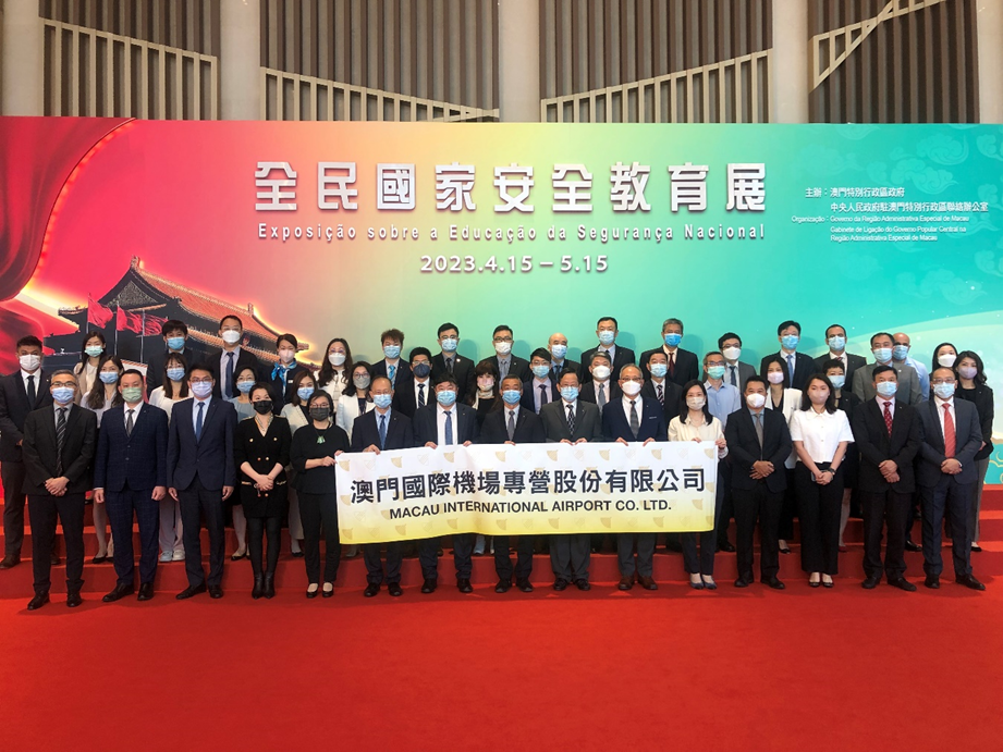 澳门国际机场一直积极参与各项国民教育的社会活动,自2018年起参与每届国家安全教育展,丰实员工对总体国家安全观背景及内涵的认知,并强化员工的国家安全意识。2023年4月24日,澳门国际机场专营股份有限公司(CAM)执行委员会主席陈颖雄先生与四位执行董事:朱丹宁先生、简焯坤先生、李时泰先生及梁以恆先生带领本司、机场信息管理技术有限公司及澳门保安有限公司近50位代表参观由澳门特别行政区政府与中央人民政府驻澳门联络办公室联合举办的全民国家安全教育展。