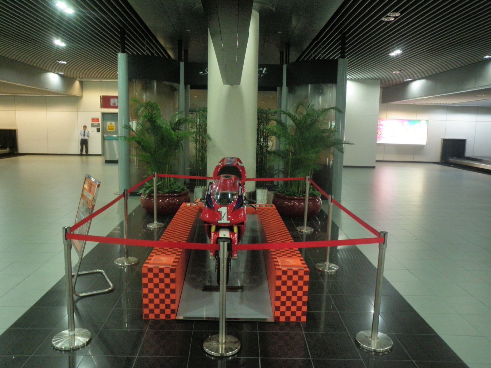 British racer - Mr. Michael Rutter was the champion of motor race car in 2003. His racing car is showcasing at arrival hall of Macau International Airport