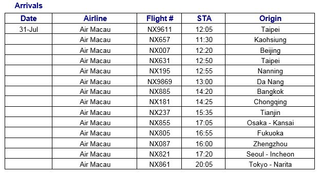 Source: Macau International Airport