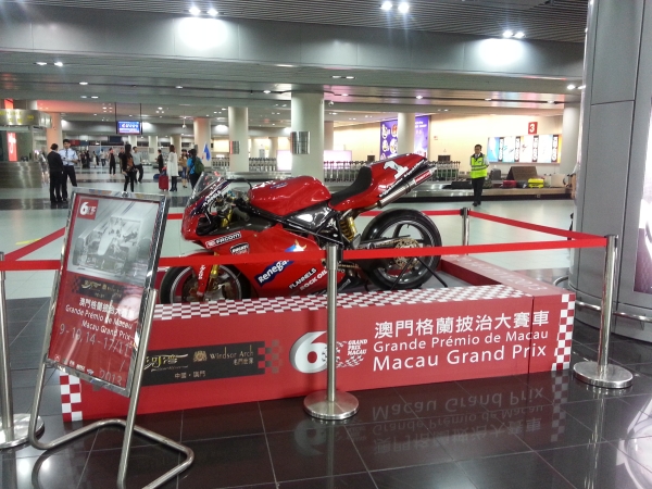 To align with the Diamond Jubilee celebrations of the 60th Macau Grand Prix which takes place on the 9th – 10th and 14th – 17th November 2013, Macau International Airport Company Limited (CAM) continues to cooperate with the Macau Government Tourist Office and the Macau Grand Prix Committee displaying a Formula 3 racing car and a motor bike at the airport arrival and departure hall.