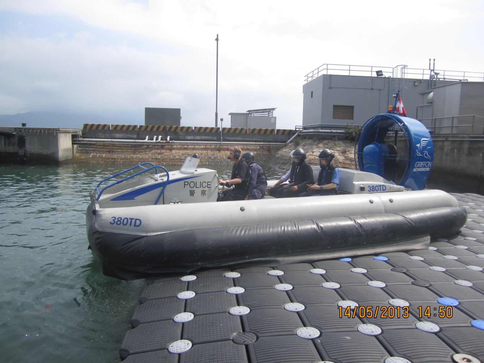 澳門國際機場為強化海上救援能力及速度,不斷搜尋先進的救援設備。在近期得知香港有關政府部門安排了新型的氣墊船進行實地演示,藉此機會,澳門國際機場專營股份有限公司聯同澳門消防局機場消防處於2013年5月14日前往香港,對新型號的水陸兩用氣墊船作實地考察。