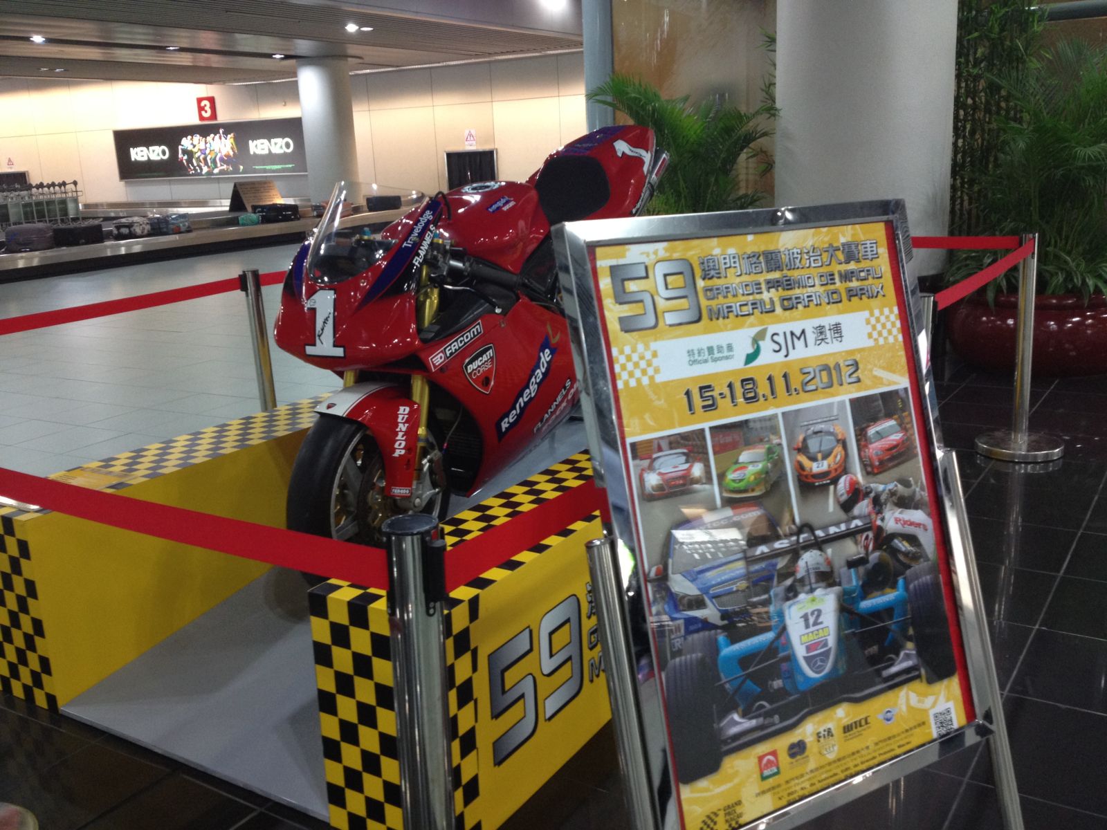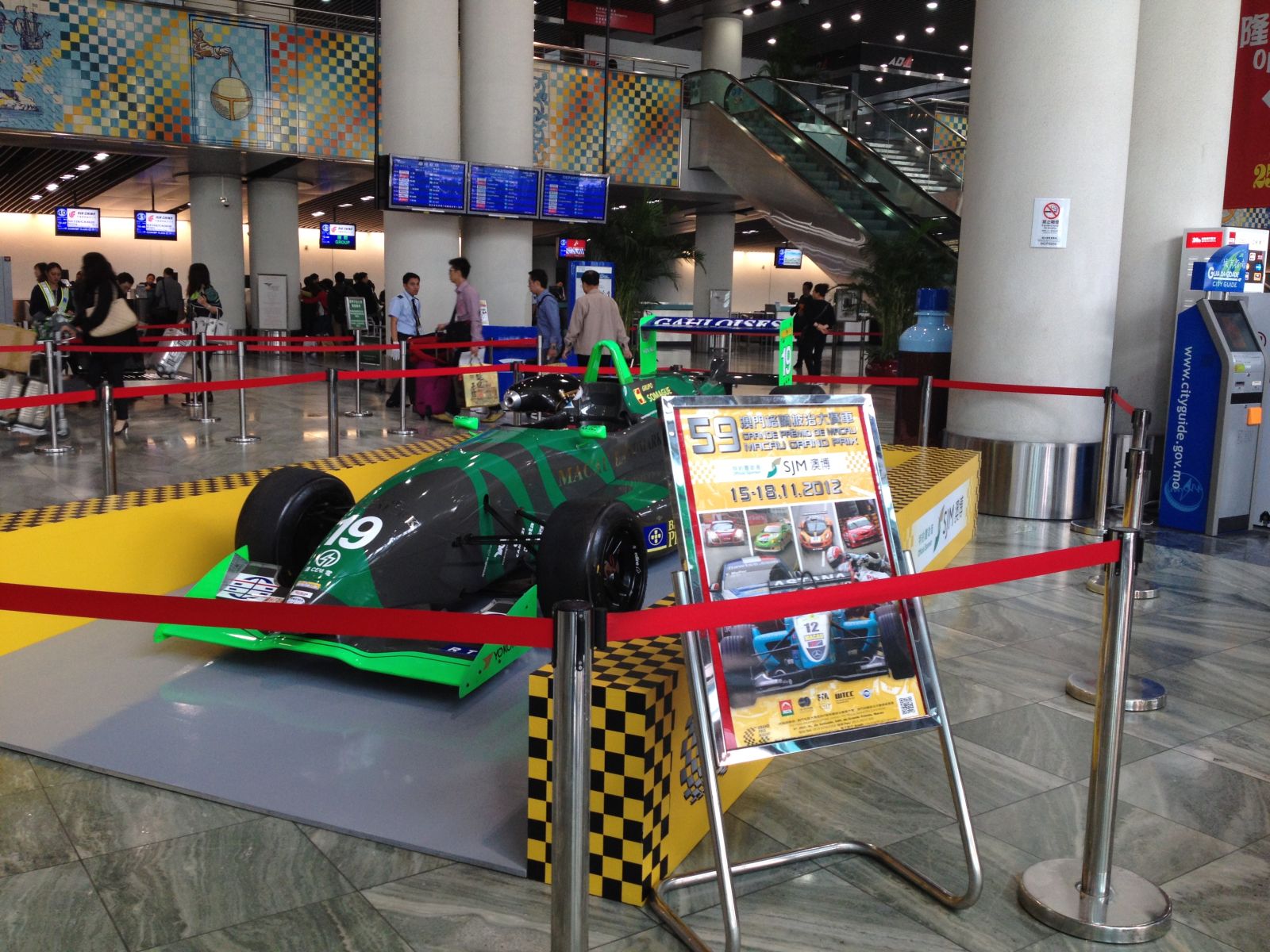 第59屆澳門格蘭披治大賽車將於2012年11月15至18日舉行,爲了讓本澳居民及訪澳旅客在澳門國際機場也能感受到這項世界知名的賽車盛事,澳門國際機場將聯同澳門旅遊局、澳門格蘭披治大賽車委員會在機場出境大堂展列曾在澳門創下佳績的三級方程式賽車和電單車。