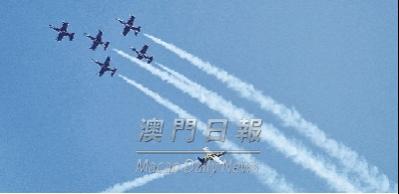 【本報消息】第九屆中國航展明日將在珠海揭幕,參展飛機已全部抵達展場,歐洲“百年靈”噴氣機特技飛行表演隊昨日率先預演全套表演,為本屆航展的開幕預熱。