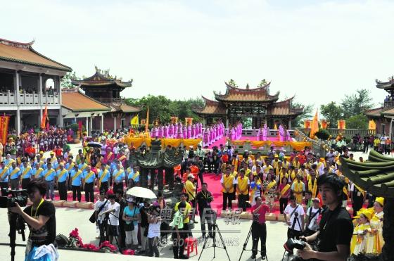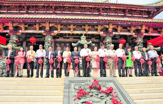 開幕式暨媽祖祭典儀式昨日上午十時在路環疊石塘山媽祖文化村天后宮舉行。行政長官崔世安,全國政協副主席李海峰,中聯辦副主任仇鴻,中央統戰部副部長林智敏,外交部駐澳特派員公署副特派員馮鐵,湖南省人民政府副省長何報翔,立法會主席劉焯華,全國政協副秘書長劉家強,海協會駐澳辦事處主任王憲,全國政協常委廖澤雲,全國政協港澳台僑局長呂虹,行政長官辦公室主任譚俊榮,澳門基金會行政委員會副主席林金城,旅遊局代局長謝慶茜,澳門中華媽祖基金會名譽主席吳福、主席顏延齡及副主席陳明金主持剪綵及祭典上香參拜儀式。