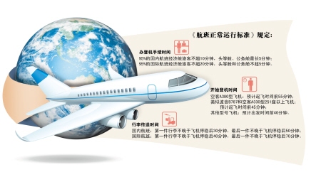 《標準》包括離港航班、到港航班、中轉旅客運行保障等5個部分。記者發現,在《標準》中,航班各保障環節的運行標準均有明確規定,所有操作環節都精細到分鐘。