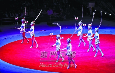 第一屆中國國際馬戲節昨晚七時半開幕,中央政治局原常委李長春、廣東省委書記胡春華、全國政協副主席何厚鏵、原國務院秘書長王忠禹、原國務委員戴秉國、行政長官崔世安、全國人大常委會華僑委員會副主任黃華華、全國人大常委賀一誠等出席開幕式,來自十二個國家的十四支全球頂尖團隊,率先在開幕式暨首場比賽獻上精彩的馬戲雜技表演。