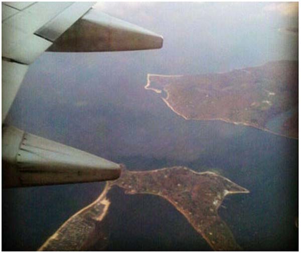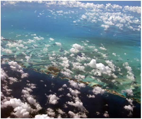 圖:飛往聖盧西亞的旅途中俯瞰加勒比海。