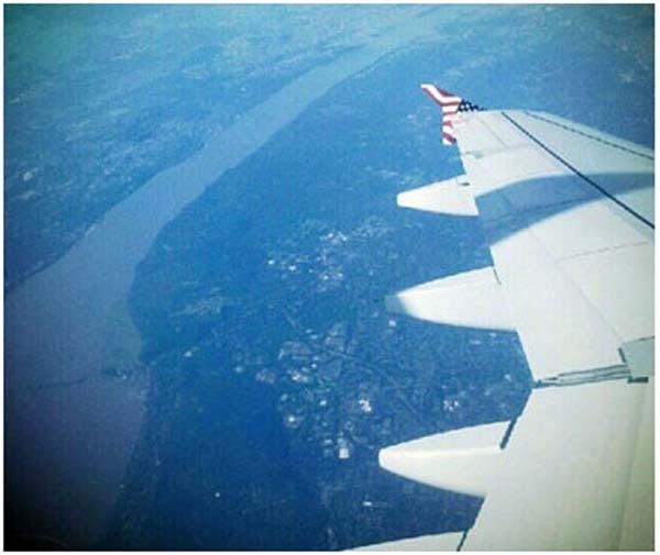 圖:在維珍美國航空公司的航班上,從南俯瞰曼哈頓和新澤西州。
