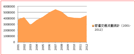 從客運量上看,近十年來雖然起伏不斷,但在經歷非典之後的客運量平穩增長,並在2007年達到近十年的最大峰值549.9萬人次。之後受各種原因影響出現了起伏。在2008年金融海嘯之後,近些年經濟復蘇狀況逐漸好轉,直接體現在客運流量的變化上。
