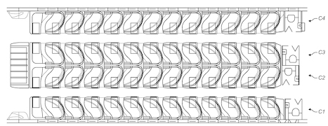 下圖是1-2-1魚骨式布局的商務艙全景圖。