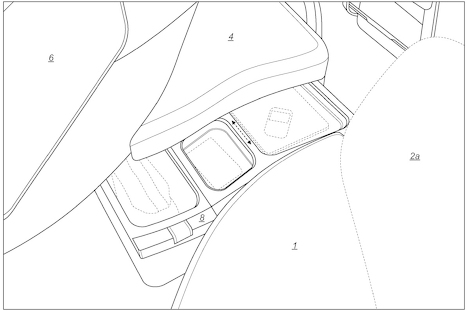 在擱腳凳下面(圖中數字4所示)有一個向外滑出的抽屜(數字8所示),裏面被分隔成幾種不同尺寸的空間。