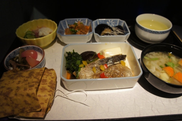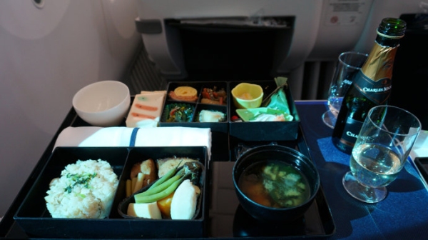 在來往於日本的航班上,美聯航提供日餐服務,相比其他航班來說精致很多。