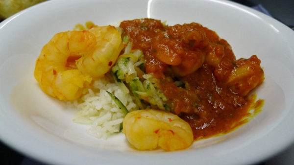 作為歐洲的老牌航空公司,漢莎航空的餐食服務雖不能說精致,還是比較令人滿意的。鋦烤大蝦配小茴香,味道濃郁獨特,令人難忘。
