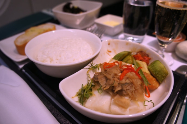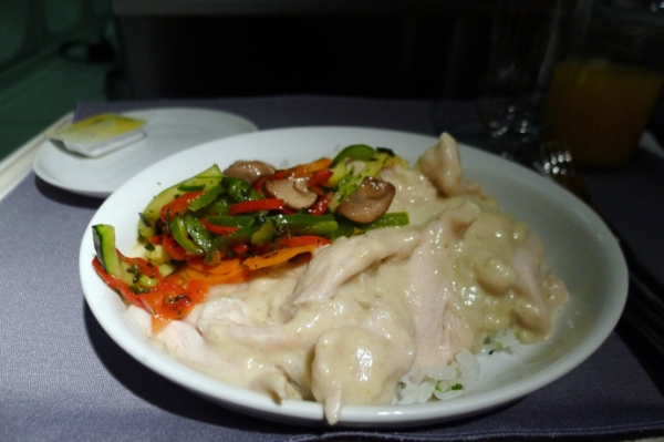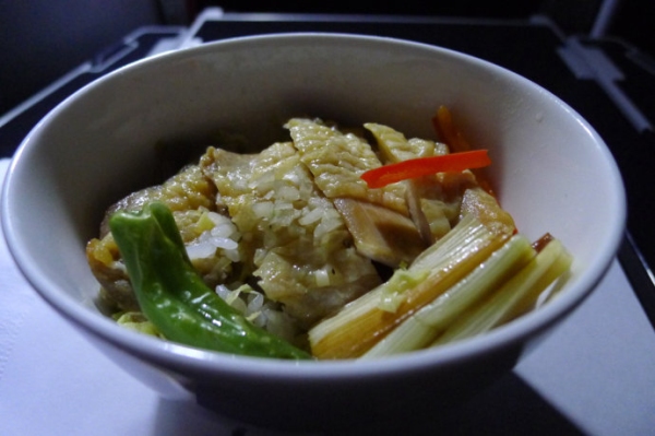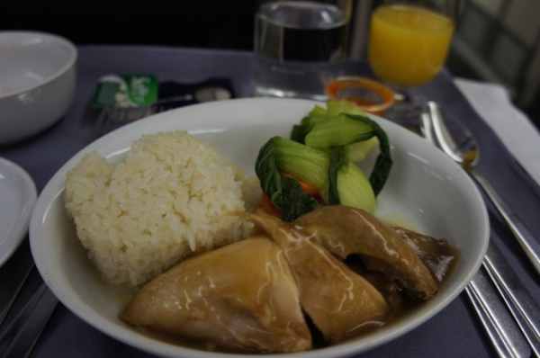 由新加坡前往成田的航班上,也有新加坡特色的海南雞飯。
