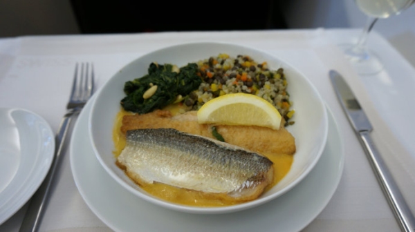 瑞士航空商務艙餐食也帶有一些本地風味。煎虹鱒魚配黍麥和蔬菜搭配營養,看起來也很小清新。