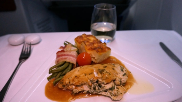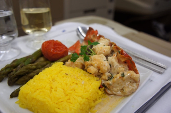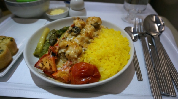 新加坡航空在主菜餐食上依然是我心中的冠軍。新航的Book the Cook提供多種經典菜式供選擇,每一種都不會讓人失望。由洛杉磯前往新加坡的SQ37航班夜餐是蟹肉意大利餃子,配龍蝦醬汁。口感新鮮,香氣濃郁。