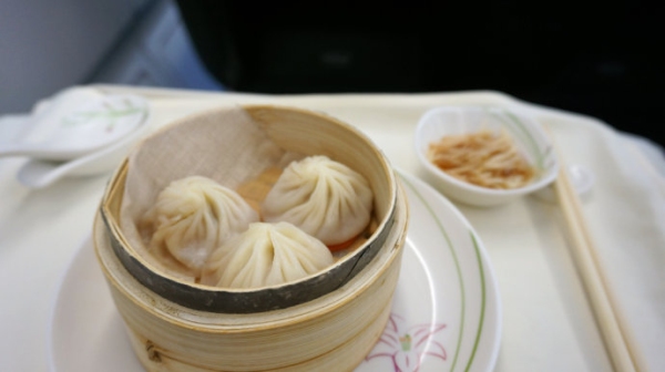然而長榮航空最大的驚喜自然是機上供應的鼎泰豐小籠包,品質和口味都與地面無異,濃濃的臺灣味道。