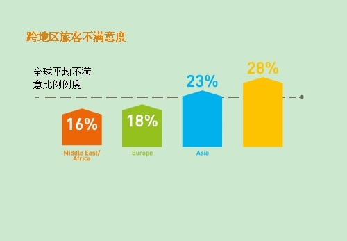 美洲地區旅客希望看到巨大改善的比例最高為28%,隨後是亞太地區,同時歐洲和非洲以及中東的旅客總體對其旅行體驗感到愉快。