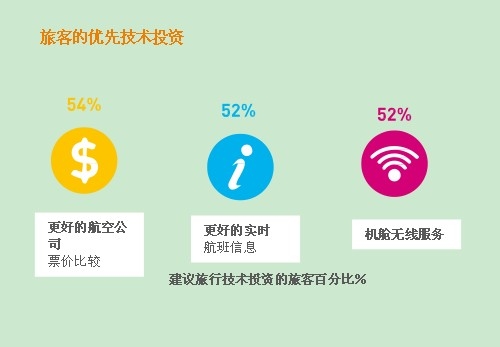 即時通知和機艙Wi-Fi是排名前三的的需求,有52%的旅客希望在這些領域投入。
